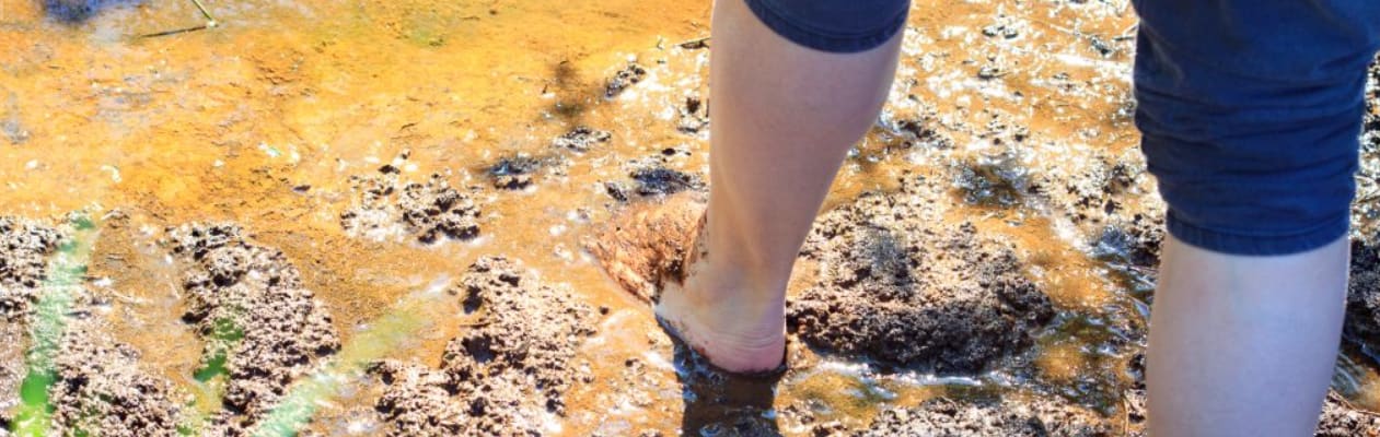 Forside / Sommerhuse / Henne Strand / Oplevelser Vesterhavets Barfodspark er en 1 km natursti med forskelligt underlag, hvor på man går med bare fødder. Slip tæerne fri i Vesterhavets Barfodspark og mærk hvordan kroppen vågner, når de mange reflekszoner under dine fødder stimuleres. Mærk den skønne og sjove fornemmelse det giver, når man oplever naturen gennem fødderne. Sanserne skærpes, motorikken og balancen trænes på forskellige ”stationer”, som udfordrer små og store fødder med fx vand, grus, mudder, kogler og koste. Oplev en afstressende følelse midt i naturen. En oplevelse for alle. Vesterhavets Barfodspark er en naturbaseret oplevelsesaktivitet for både børn og voksne. Det er en god idé at medbringe et håndklæde til efterfølgende fodvask. Her er nogle billeder af naturstien: